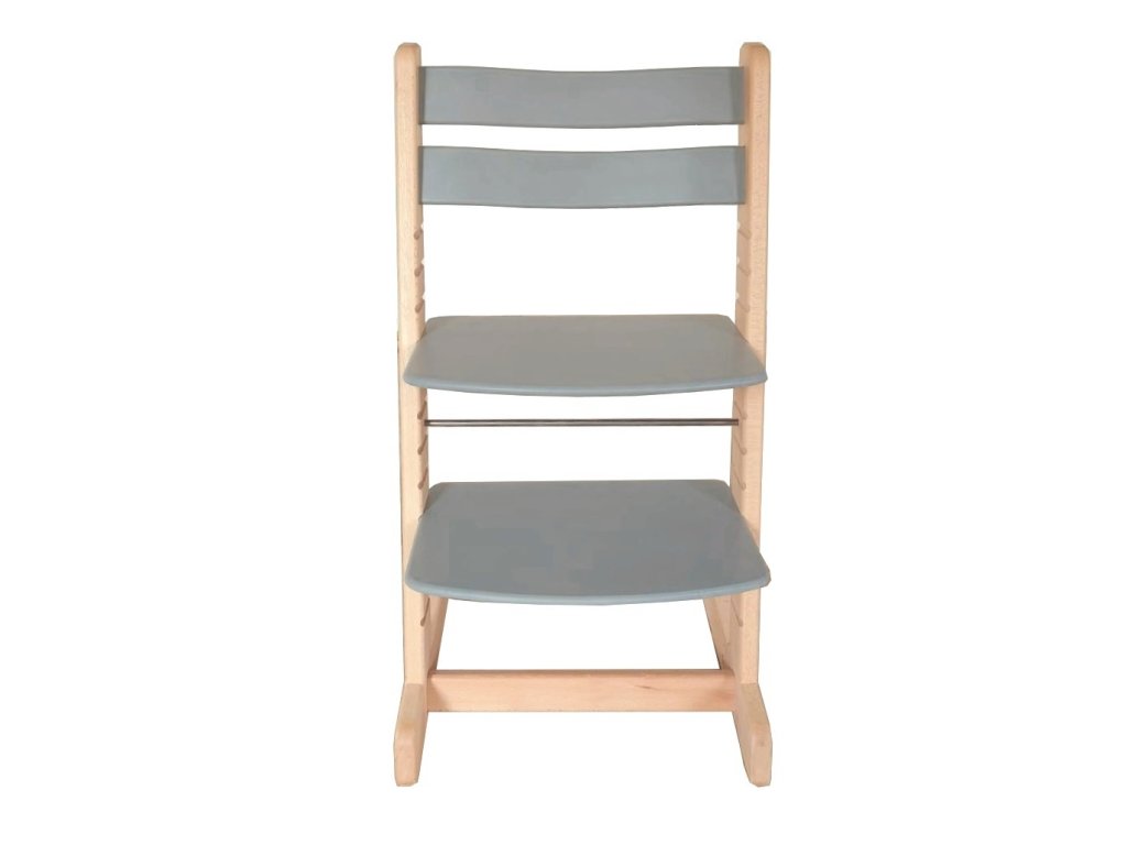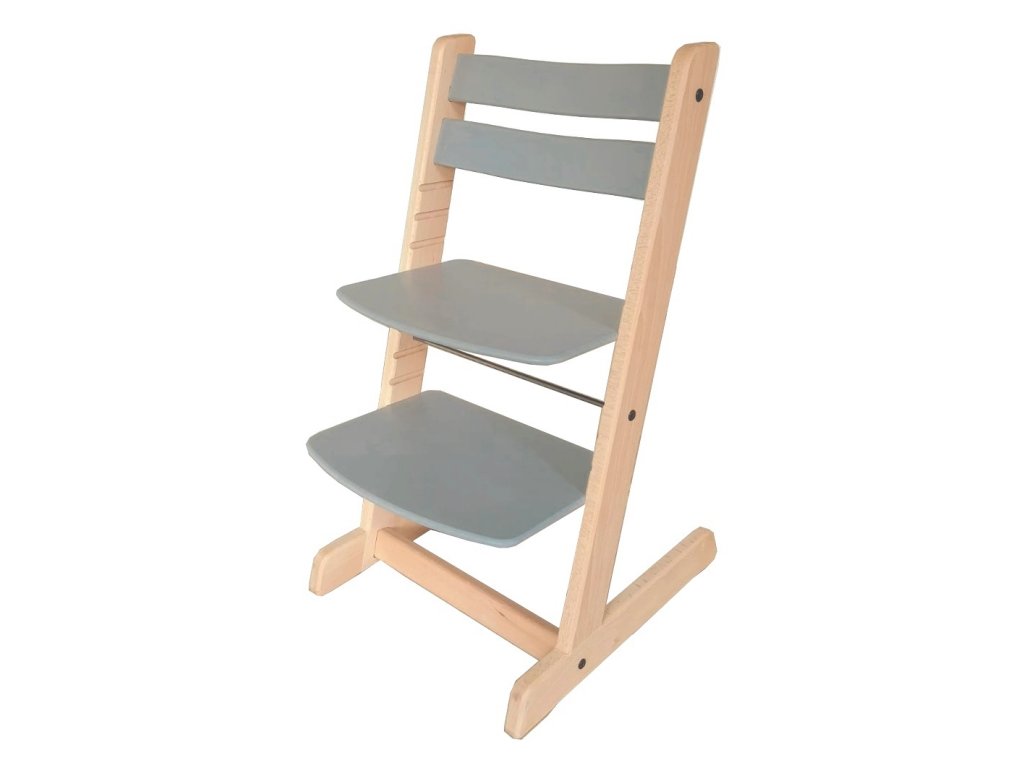 Český výrobek. Český design. Chráněný vzor. Jednoduchá montáž. Žádné podpěry, příčky nebo trojúhelníky navíc. Praktická dětská rostoucí jídelní židle Lucie vyrobená z bukového masivu domácí produkce, který neobsahuje žádné formaldehydy, dioxin, těžké kovy a pod. Bočnice mají tloušťku 25 mm. Sedáky jsou vyrobené z celobukové překližky 12mm. Překližka se svou konstrukcí křížového lepení v několika vrstvách vyznačuje vysokou pevností a tvarovou stálostí. Díky frézovaným drážkám v bočnicích je židlička nastavitelná podle výšky Vašeho dítěte, je tedy vhodná pro děti od 3 let až po školáky, zároveň je možné nastavovat hloubku sedáku i podnožky. Má jednoduchý design s nosností do 100 kg. Židle podporuje správné sezení dětí. Umožňuje sezení dětí u stolu ve výšce dospělých a zároveň poskytuje oporu pro nohy dítěte.